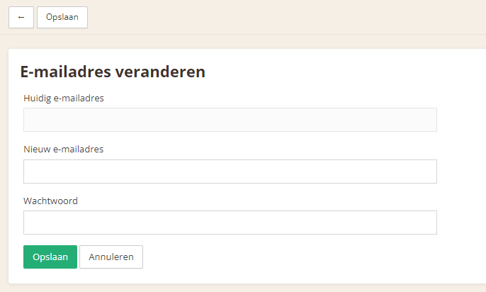Vul hier het nieuwe e-mailadres in. Ook moet je ter bevestiging van de verandering jouw wachtwoord invullen.